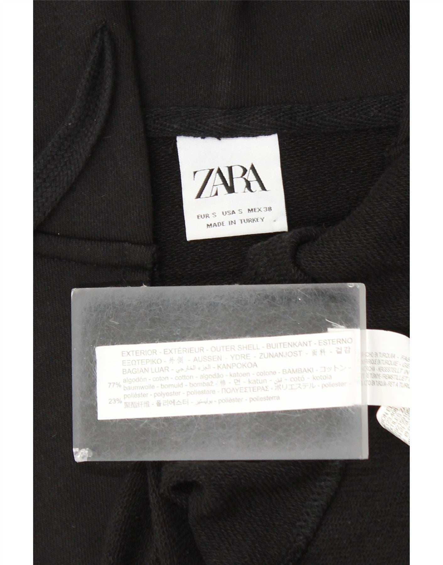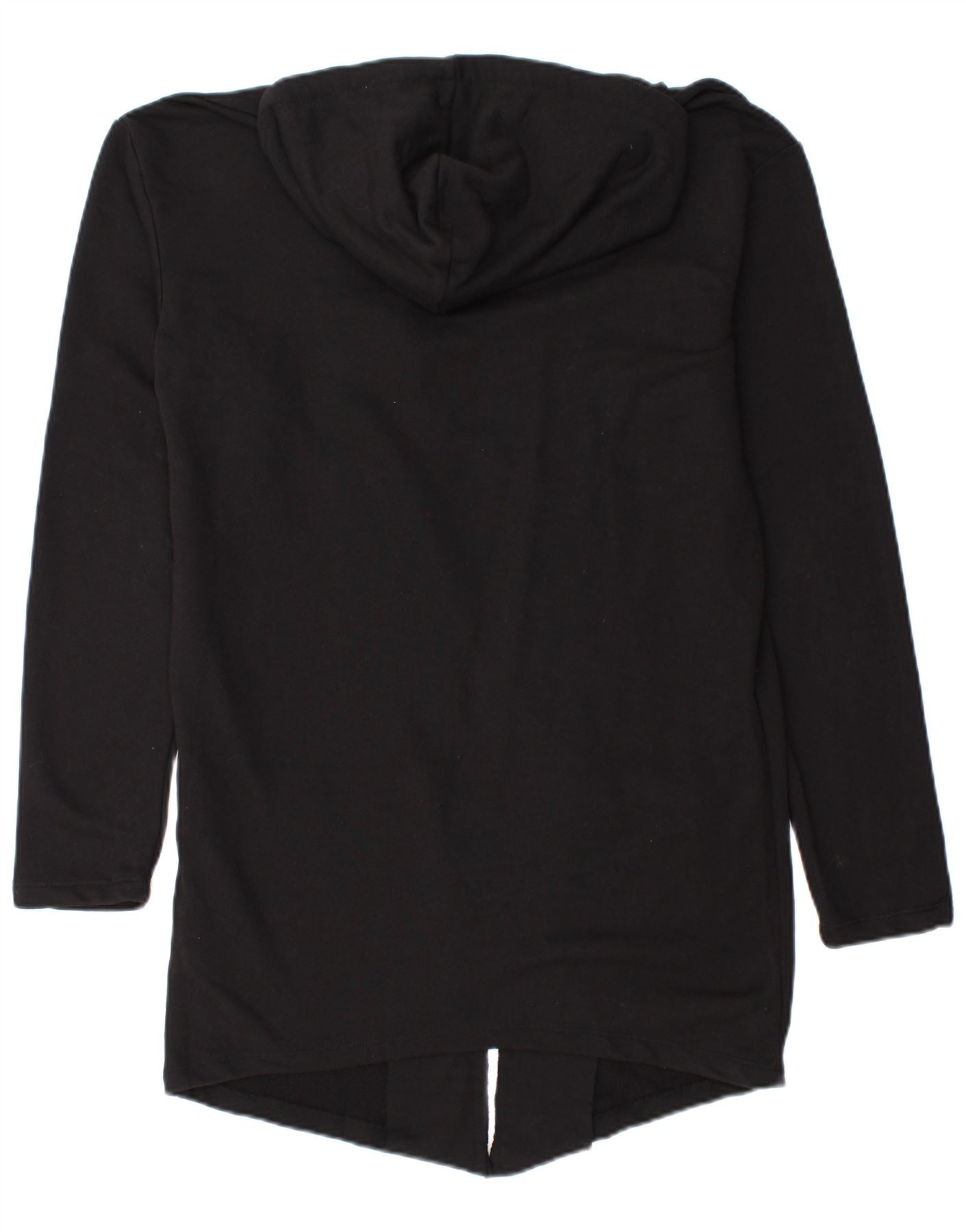 ZARA Womens Longline Hooded Cardigan Sweater UK 10 Small Black Cotton