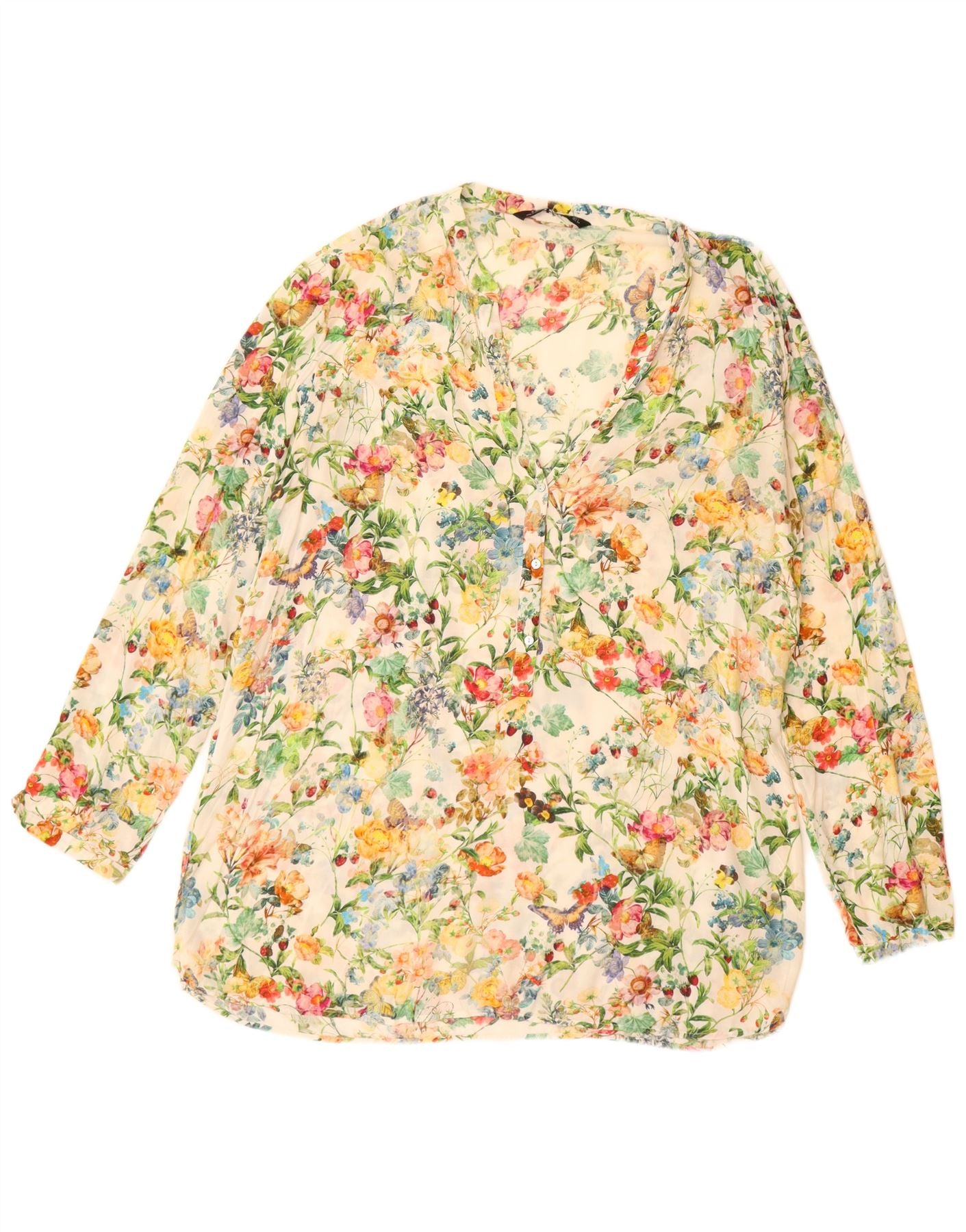ZARA Womens Longline Long Sleeve Blouse Top UK 16 Large Off White Floral