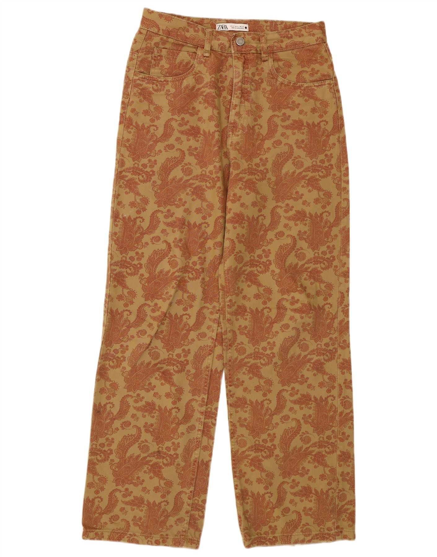 Zara Womens Loose Fit Casual Trousers Medium W28 L30 Brown Paisley