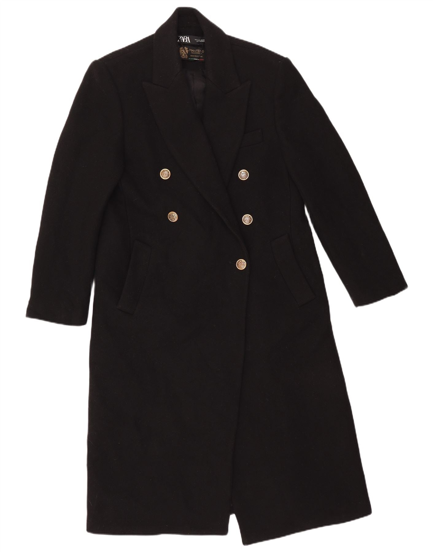 ZARA Womens Manteco Double Breasted Coat UK 14 Medium Black Wool