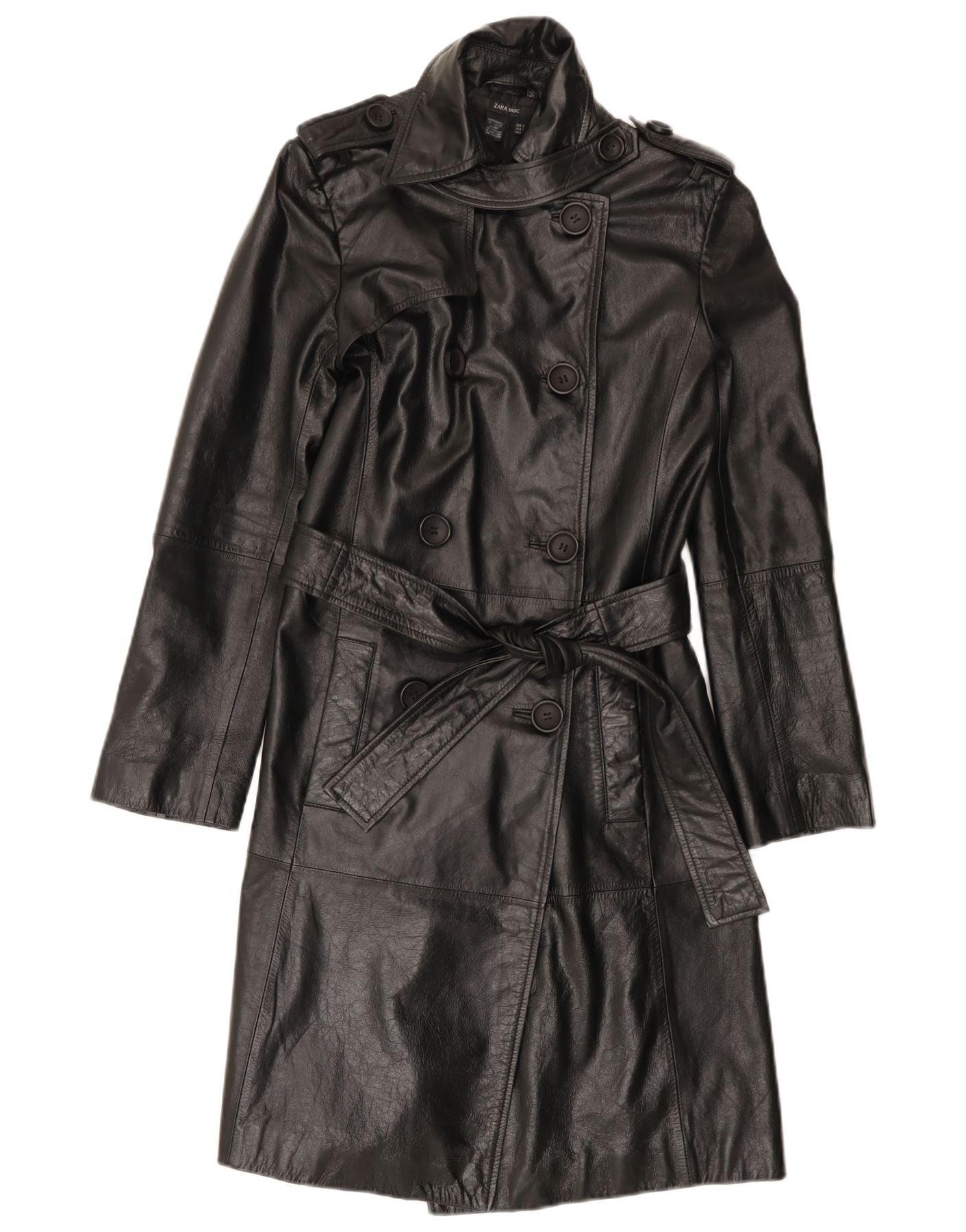 Zara Womens Military Leather Coat UK 10 Small Black Leather