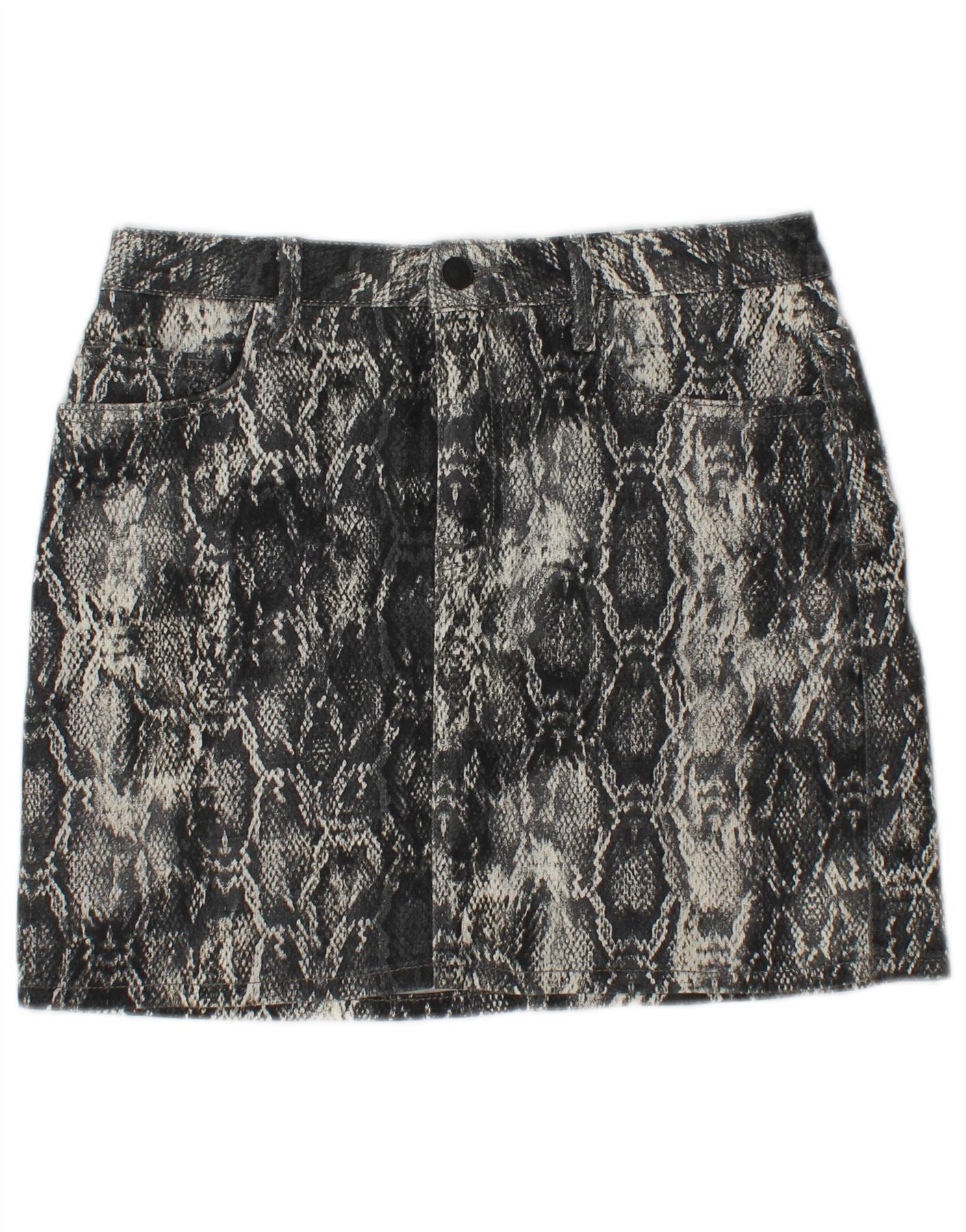 ZARA Womens Mini Skirt Medium W30 Grey Animal Print Cotton