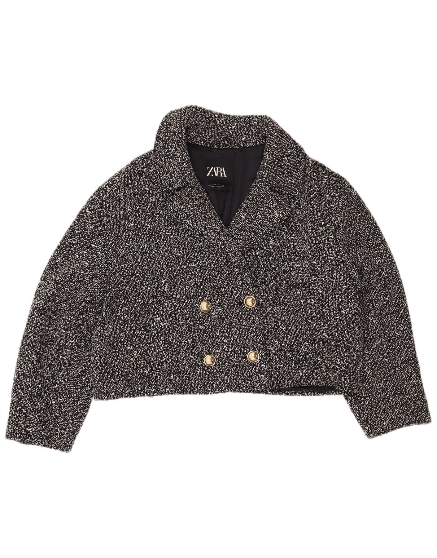 ZARA Womens Crop Denim Jacket UK 10 Small Black Cotton