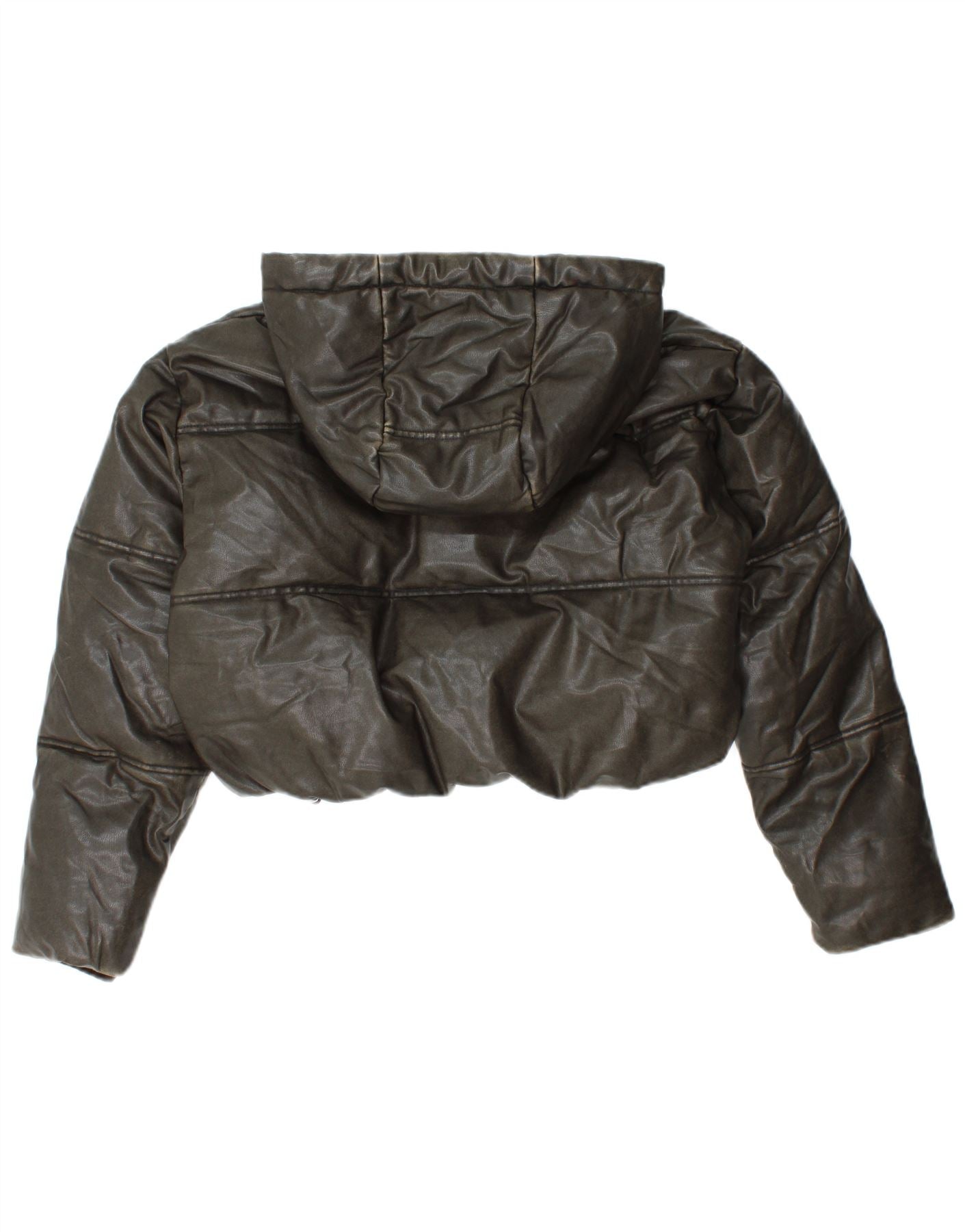 ZARA Womens Oversized Crop Hooded Padded Jacket UK 10 Small Khaki