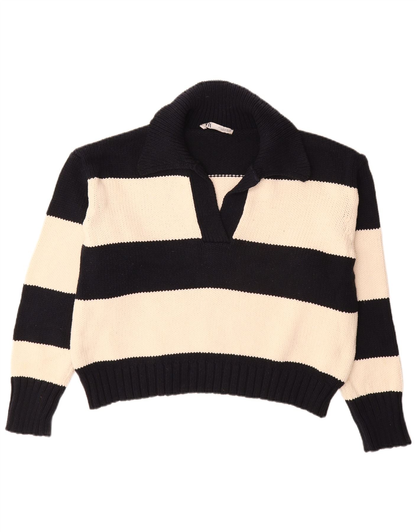 ZARA Womens Oversized Polo Neck Jumper Sweater UK 14 Medium Black Striped