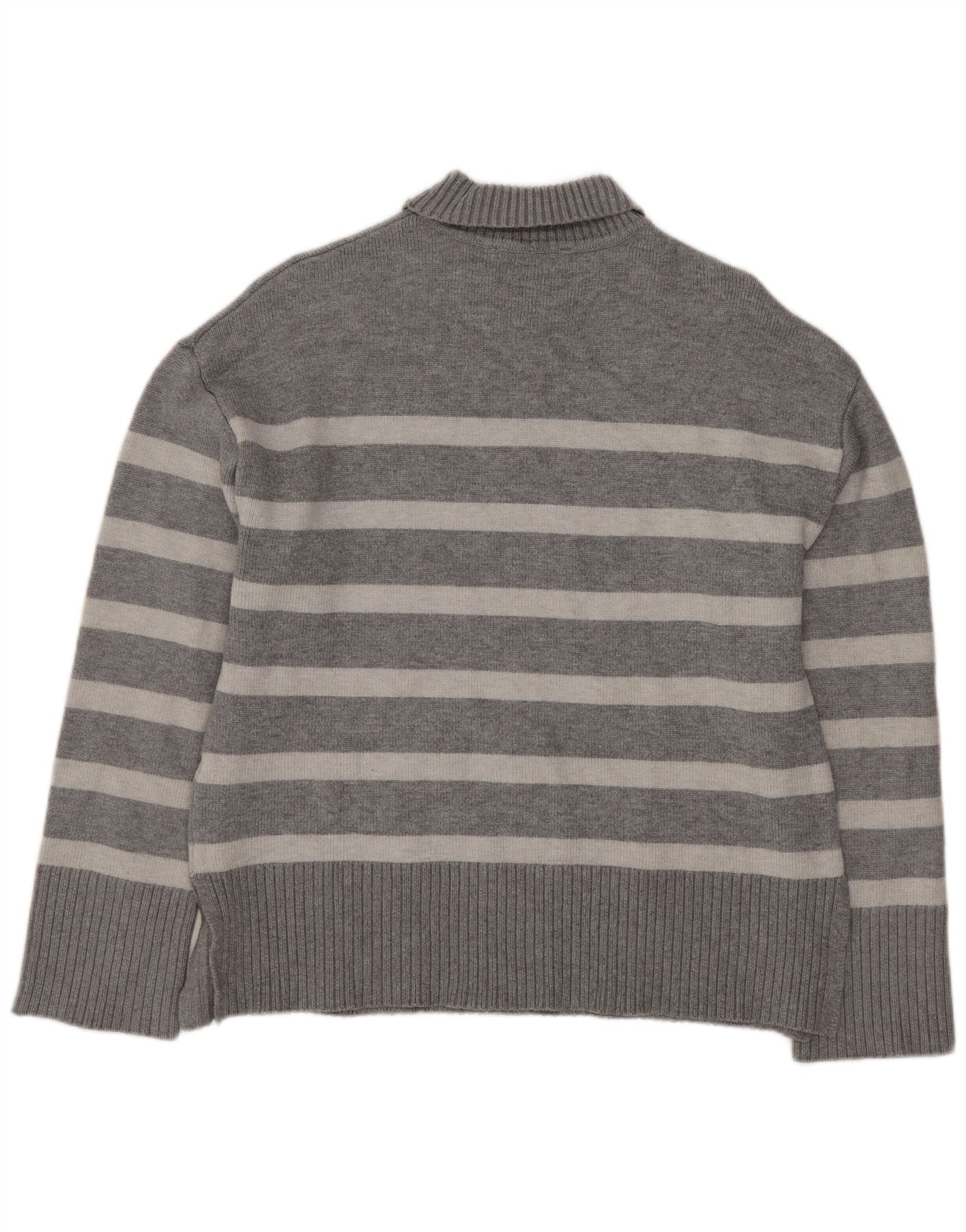Zara Womens Oversized Turtle Neck Jumper Sweater UK 10 Small Grey Striped