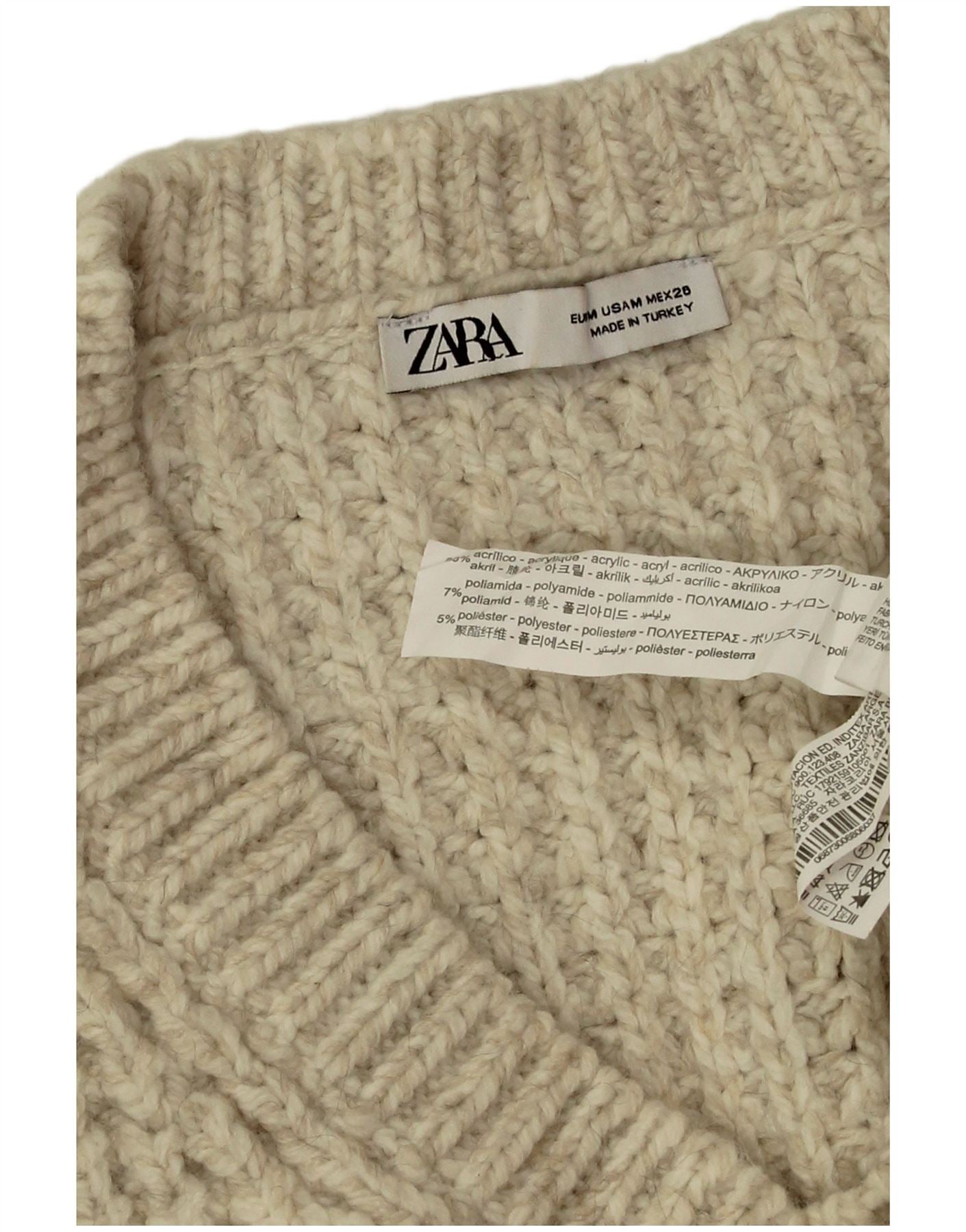 Zara Womens Oversized V-Neck Jumper Sweater UK 14 Medium Beige Acrylic