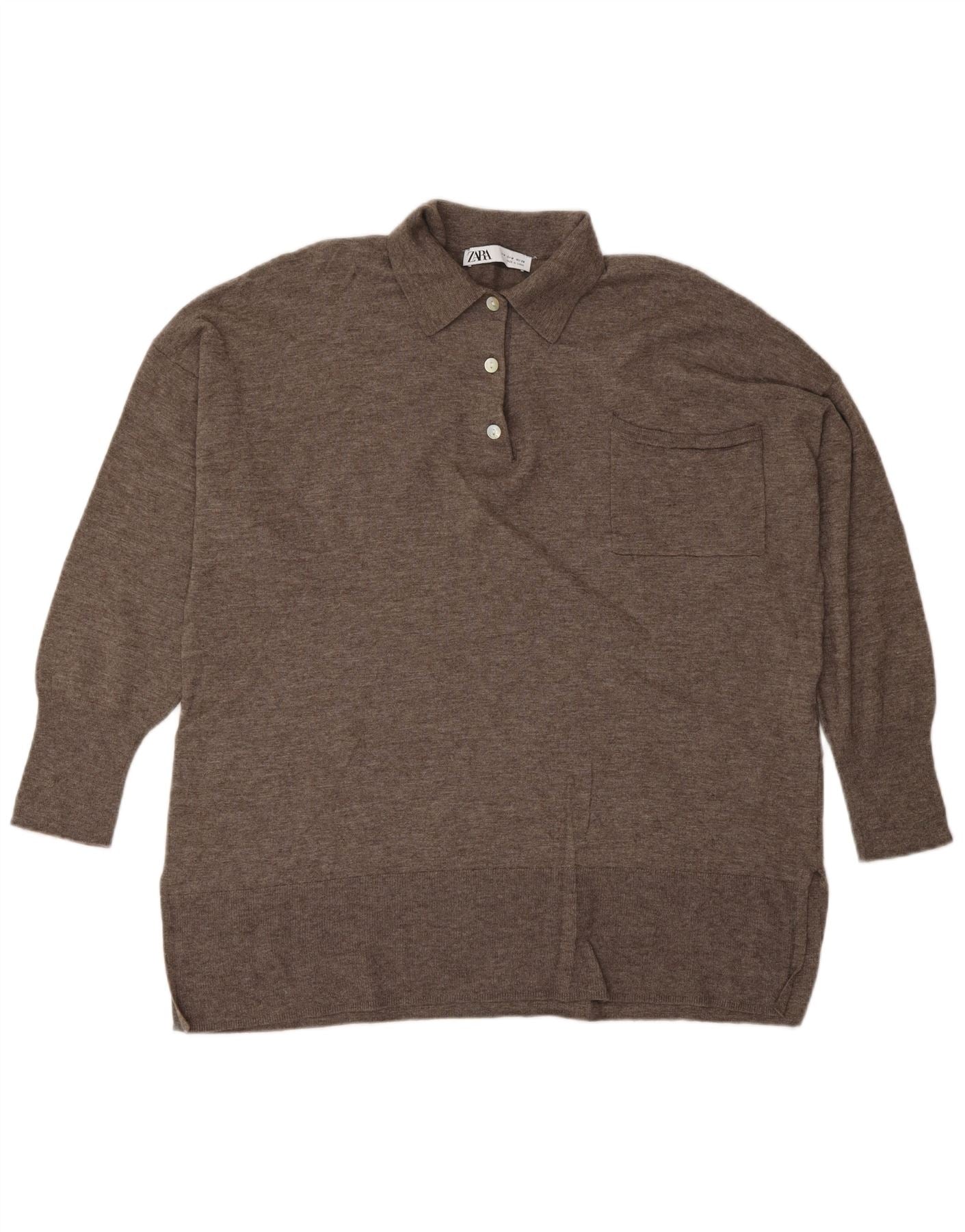 ZARA Womens Polo Neck Jumper Sweater Medium Brown Wool