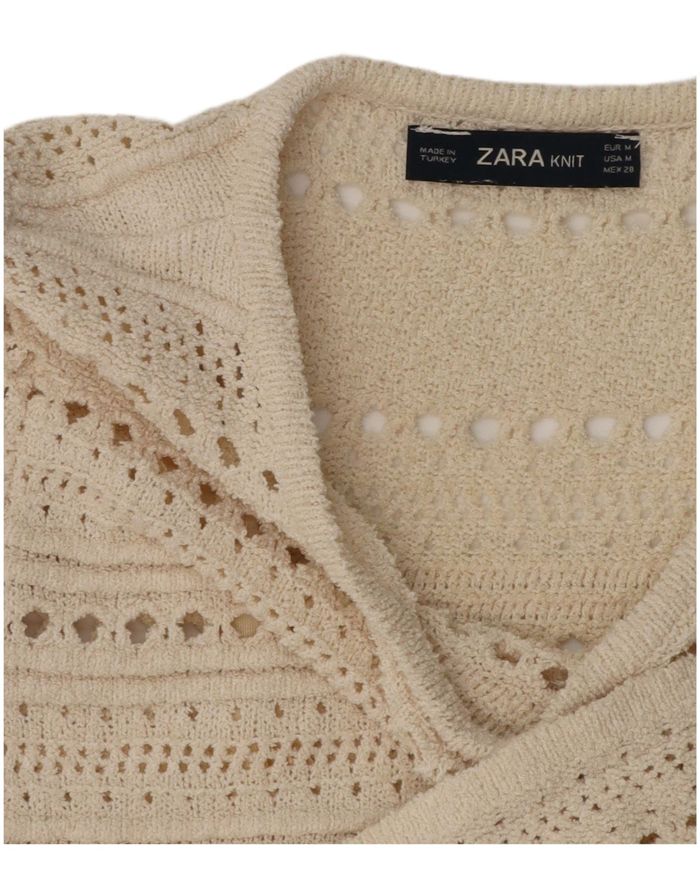 Zara Womens See Through Short Sleeves Jumper Dress UK 12 Medium Off White