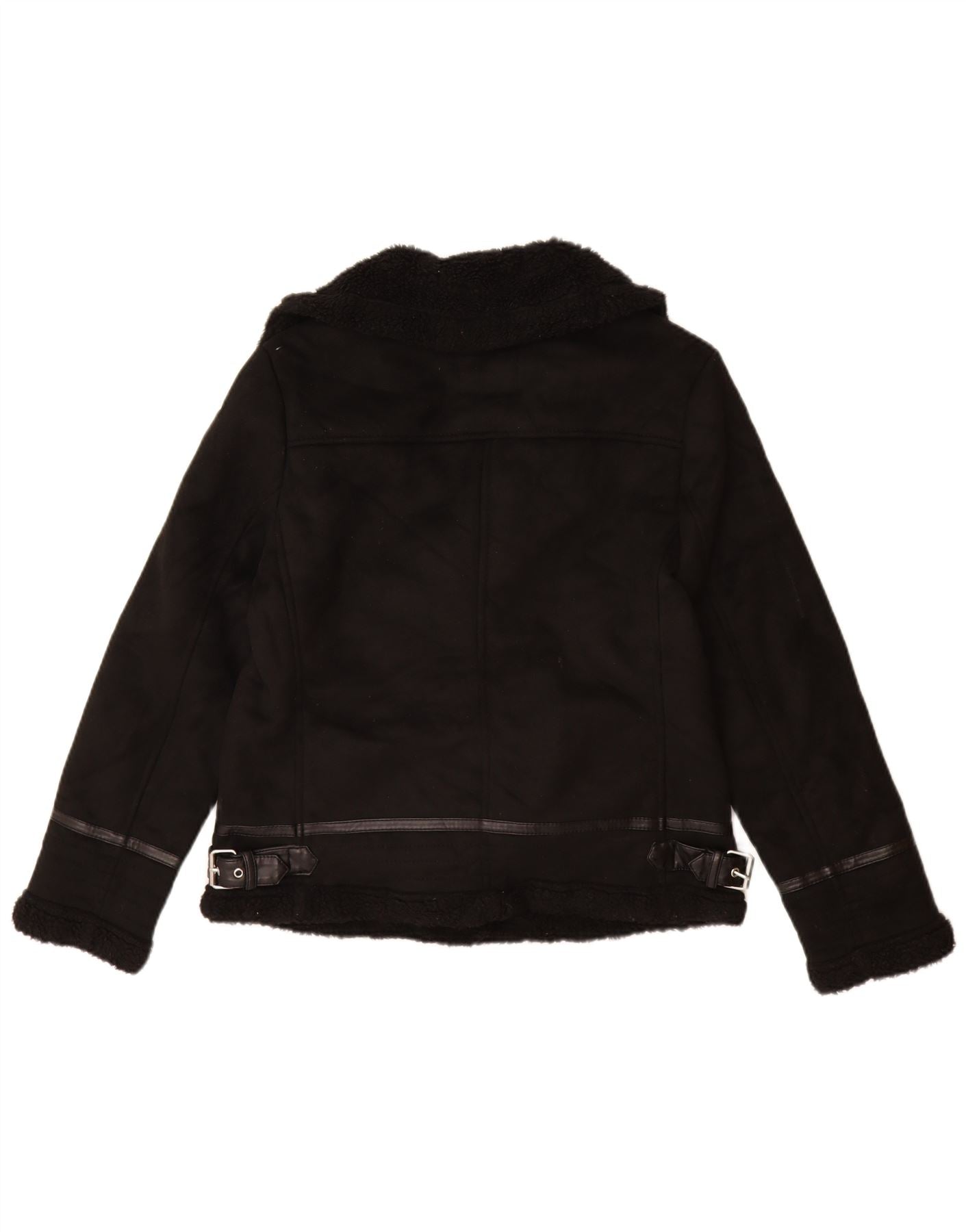 ZARA Womens Sherpa Biker Jacket UK 12 Medium Black Polyester