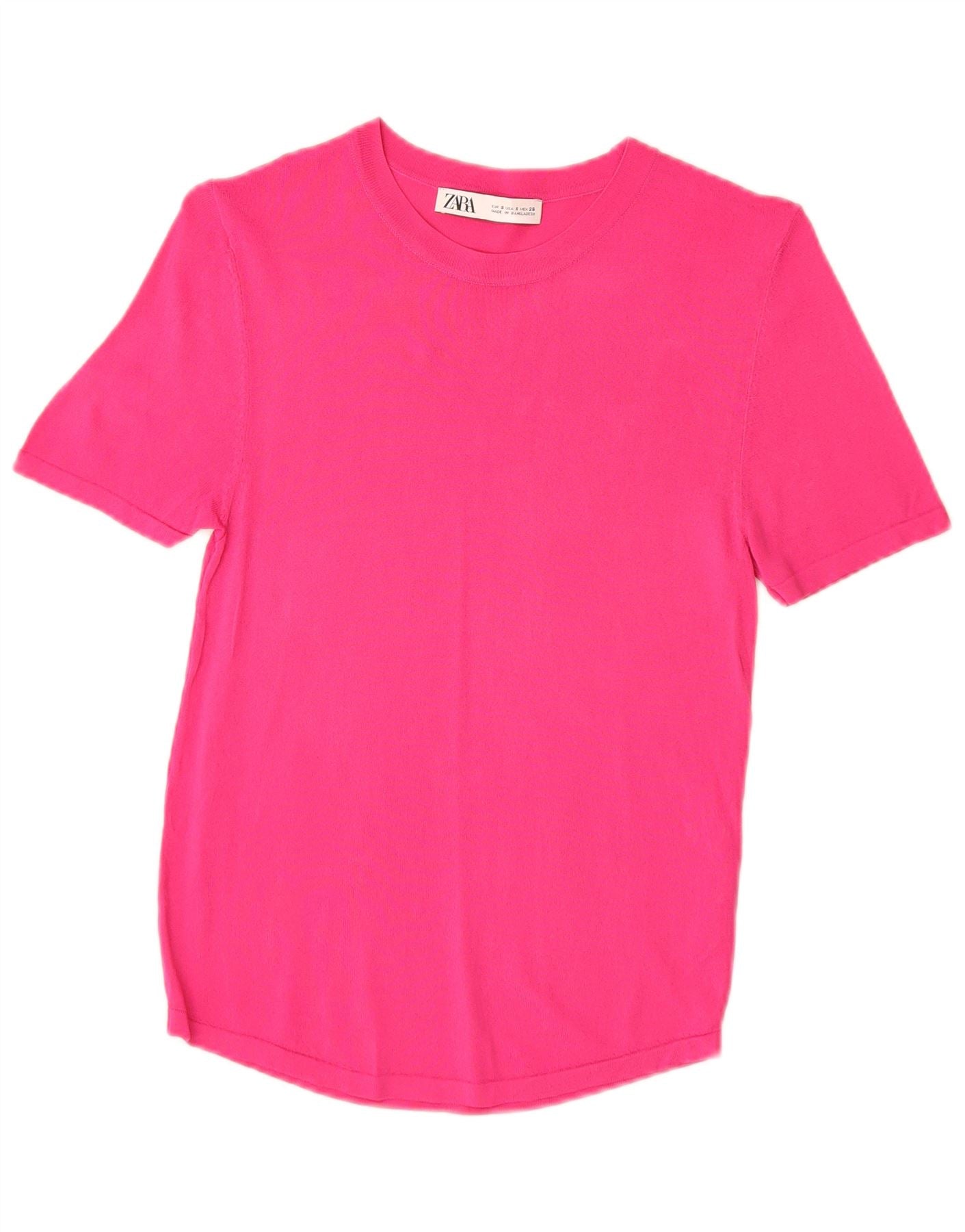 ZARA Womens Short Sleeve Boat Neck Jumper Sweater UK 8 Small Pink Viscose