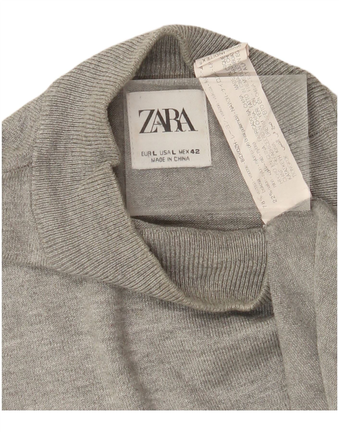 ZARA Womens Short Sleeve Turtle Neck Jumper Sweater UK 16 Large Grey