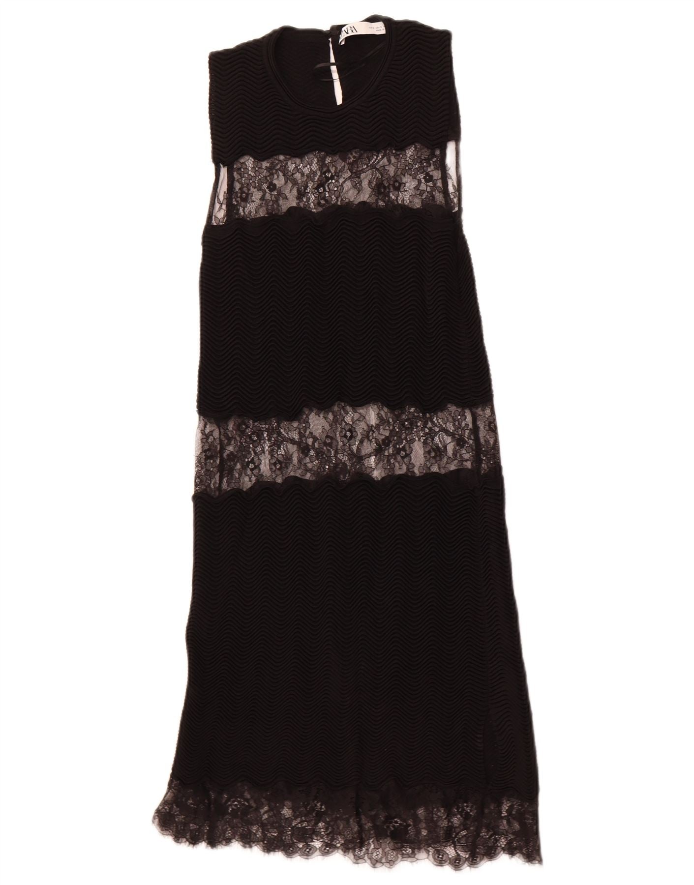 ZARA Womens Sleeveless Lace Maxi Dress UK 8 Small Black Viscose