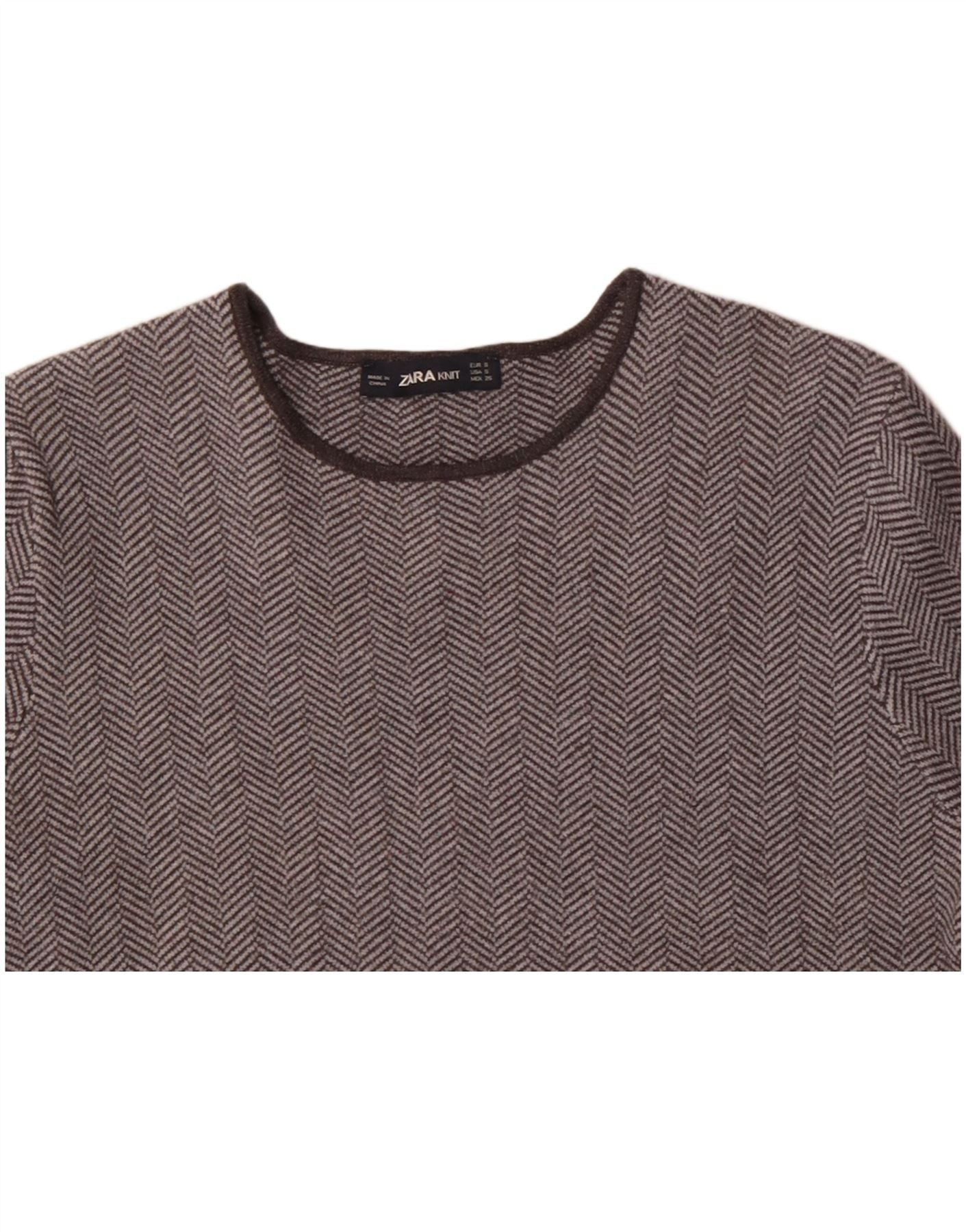 ZARA Womens T-Shirt Top UK 10 Small Grey Herringbone Viscose