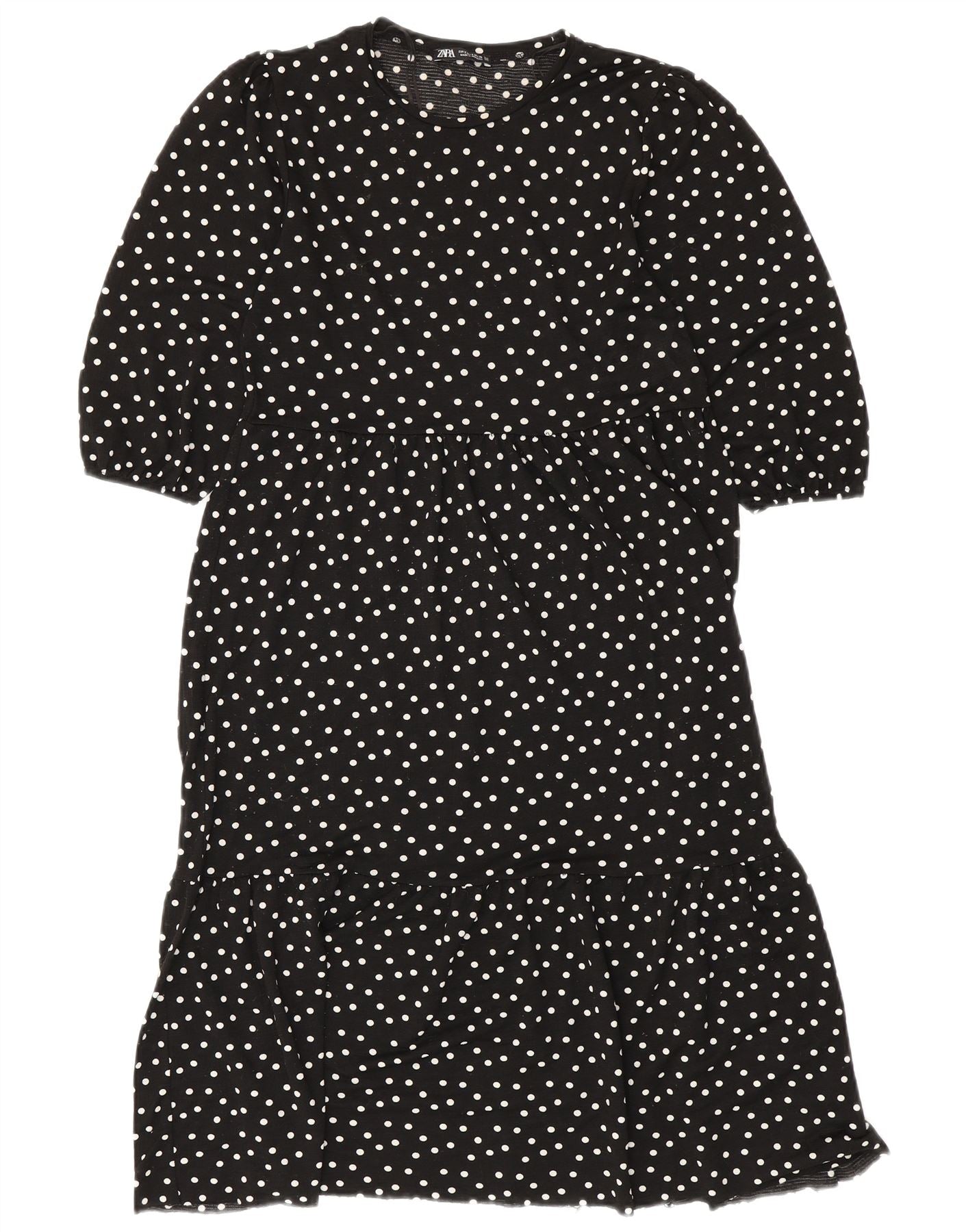 ZARA Womens Tiered Dress UK 10 Small Black Polka Dot Polyester