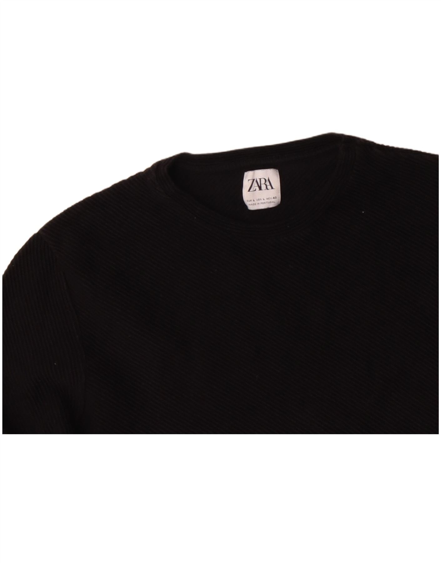 ZARA Womens Top Long Sleeve UK 14 Large Black Cotton
