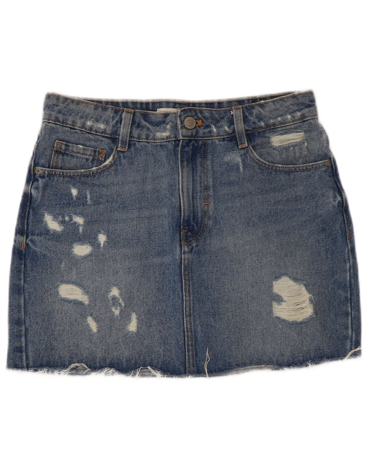 ZARA Womens Trafaluc Distressed Mini Denim Skirt XS W24 Blue Cotton