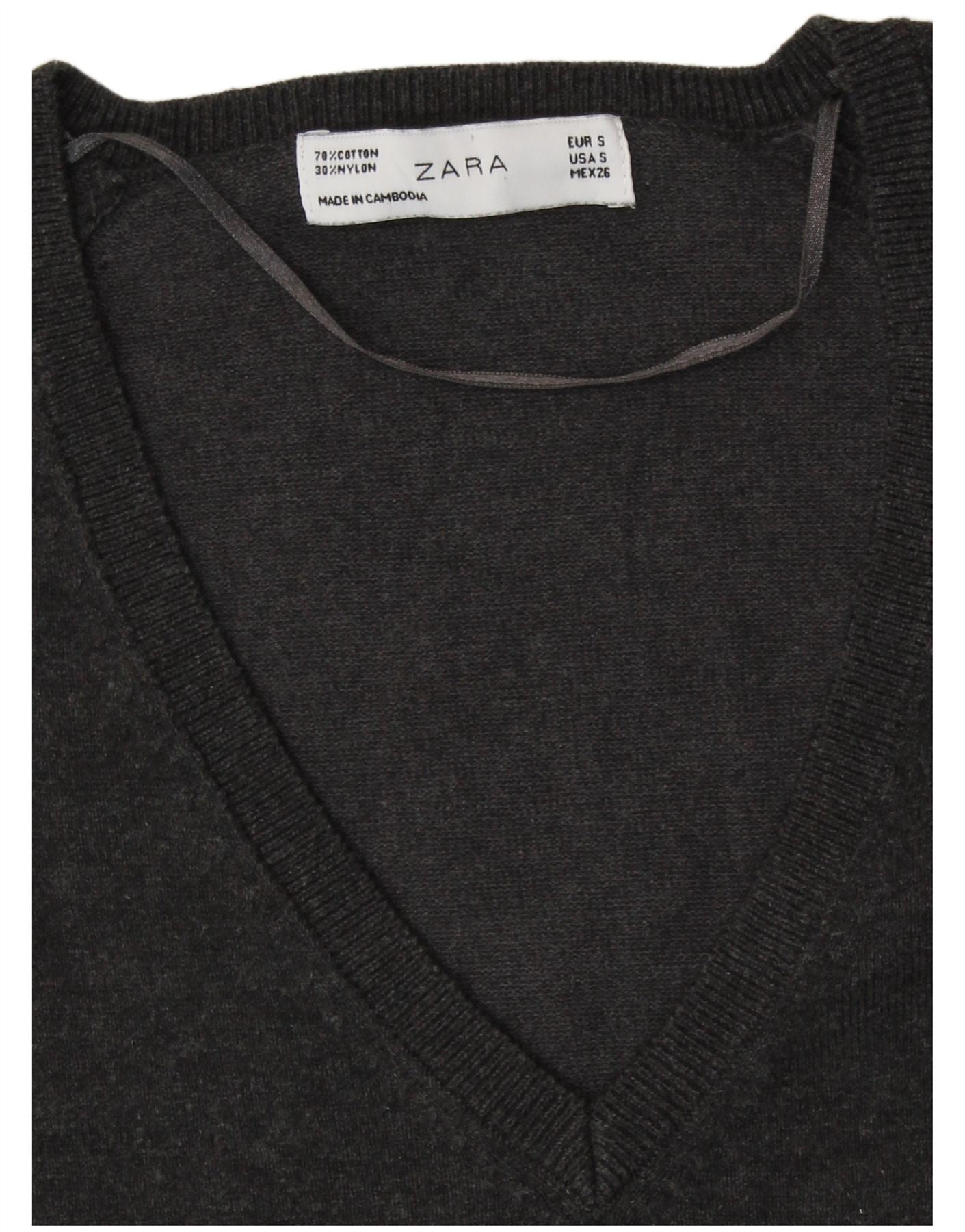 ZARA Womens V-Neck Jumper Sweater UK 10 Small Grey