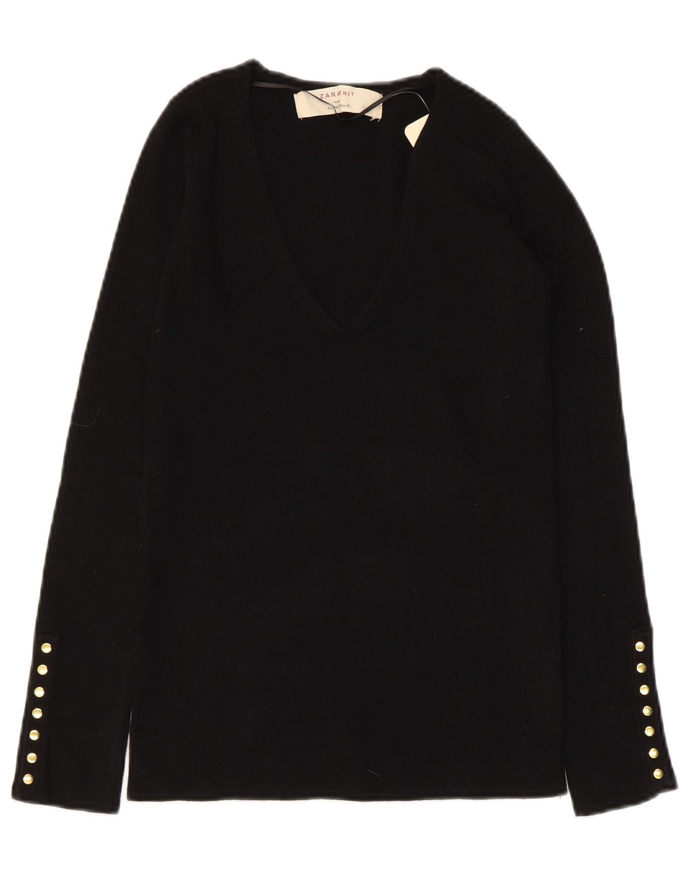 ZARA Womens V-Neck Jumper Sweater UK 12 Medium Black Rayon