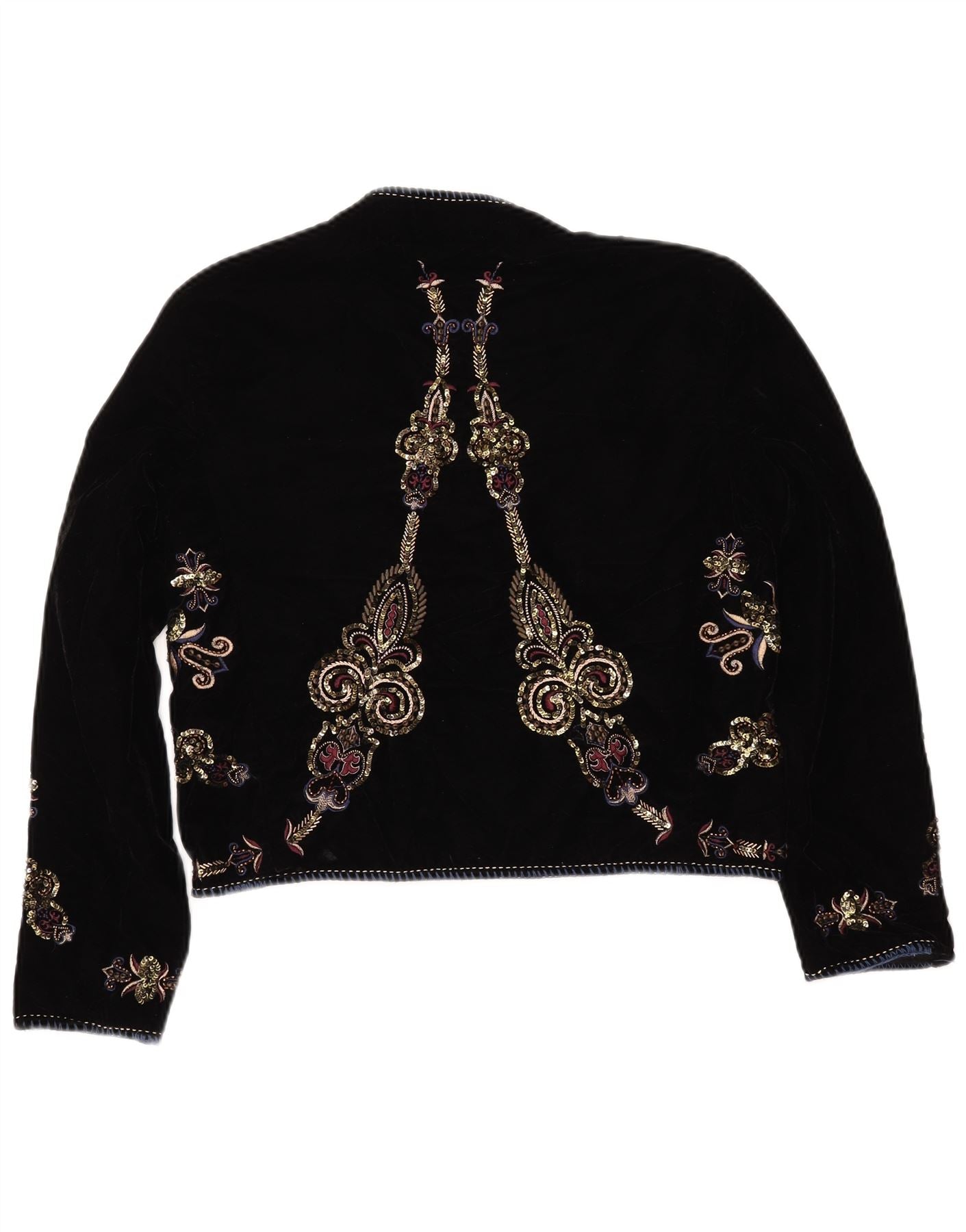 ZARA Womens Velvet Open Bolero Jacket UK 16 Large Black Paisley