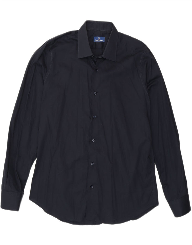 TED BAKER Mens Shirt Size 16.5 XL Navy Blue Striped Cotton Vintage Ted Baker and Second-Hand Ted Baker from Messina Hembry
